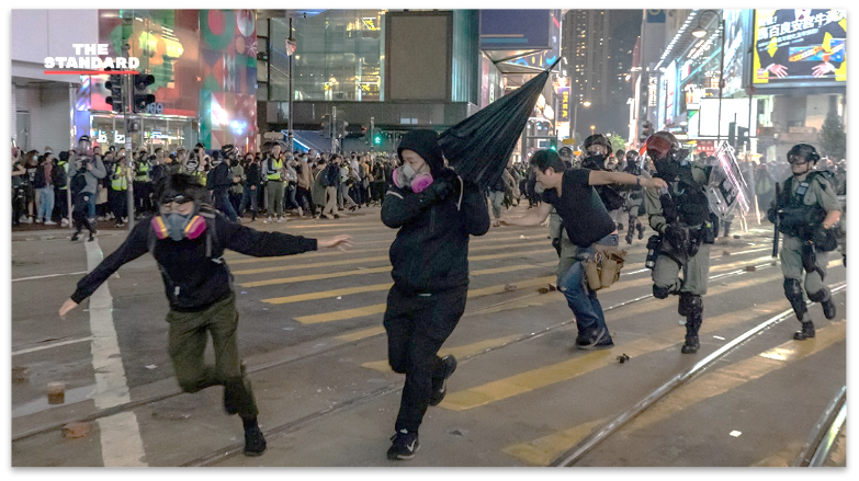 ฮ่องกงเป็นเขตปกครองตนเองตั้งอยู่ริมฝั่งทางใต้ของประเทศจีน ในทางภูมิศาสตร์มีสามเหลี่ยมปากแม่น้ำจูเจียงและทะเลจีนใต้โอบรอบ ซึ่งถือได้ว่าได้รับพลังจากจีนวิ่งข้ามน้ำข้ามทะเลมา ซึ่งภูมิประเทศล้อมรอบไปด้วยแม่น้ำ สายน้ำแห่งความรื่นรมย์ ซึ่งมีทั้งภูเขา และเกาะล้อมรอบ มีพลังมังกรโอบอุ้ม เลยทำให้ฮ่องกงนั้นจัดเป็นศูนย์กลางทางการเงิน คนจากทั่วโลก ซึ่งในอดีตนั้นราคาที่ดินในฮ่องกงนั้นมีราคาไม่แพงมาก ซึ่งมีพื้นที่สีเขียว พื้นที่โล่ง ตึกสูงตามพอเหมาะพอสมควร แต่ในปัจจุบันนี้ ราคาที่ดินแพงมากจึงทำให้เกิดเป็นตึกสูงเกิดขึ้นทุกซอกทุกมุมเต็มเมืองไปหมด จึงทำให้ที่ว่างหรือ space พื้นที่โล่งนั้นได้หายไป ซึ่งในทางฮวงจุ้ยนั้นถือว่าเสียหายมาก ๆ ซึ่งจุดศูนย์กลางรัฐบาลของฮ่องกงนั้น ตำแหน่งหงส์แดงภูเขาถูกกดทับชัยภูมิบนที่นั้นพอดี (ภูเขาไร้น้ำใจ) สายน้ำไหลหวนคืน ด้วยเหตุผลนี้จึงทำให้ คนฮ่องกงอพยพไปอาศัยอยู่ต่างประเทศเยอะมาก ๆ และลูกหลานรุ่นใหม่ ๆ ก็ไม่เชื่อฟังพ่อแม่ ผู้ใหญ่ คนรุ่นใหม่ขาดความรักชาติ ซึ่งนั่นก็เพราะฮวงจุ้ยเป็นตัวกำหนดเหตุการณ์ต่าง ๆที่จะเกิดขึ้นกับประเทศและคนที่อาศัยอยู่ภายในประเทศนั่นเอง