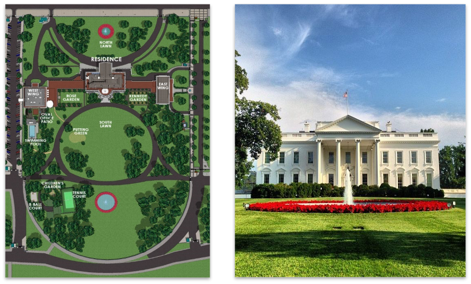 ด้วยการออกแบบตกแต่งทางด้านสถาปัตยกรรมก็จะต้องมีการออกแบบและตกแต่งให้ดีที่สุดไม่ว่าจะด้วยขนาดความกว้าง ความสูง สัดส่วนต่าง ๆ แต่ถ้าเรามองย้อนกลับกัน ตำแหน่งที่นั่งของท่านประธานาธิบดีนั้น ตำแหน่งด้านหลังก็เปรียบได้เหมือนกับ ตำแหน่งของบารมี ถึงแม้ท่านผู้นำอเมริกา จะมีอำนาจล้นฟ้าแต่สุดท้ายก็ไม่สามารถรักษาตำแหน่งต่อไปได้ ซึ่งก็มักจะเกิดขึ้นกับทุกยุคทุกสมัย ซึ่งเป็นเพราะข้างหลังเปิดโล่ง ขาดภูเขาหนุน สนับสนุน หมดอำนาจสิ้นไปนั่นเอง จะแตกต่างกับห้องทำงานของปูติน ซึ่งด้านหลังโต๊ะทำงานจะดูหนักแน่นและมั่นคง ซึ่งก็จะสามารถรักษาตำแหน่งไว้ได้อย่างถาวร