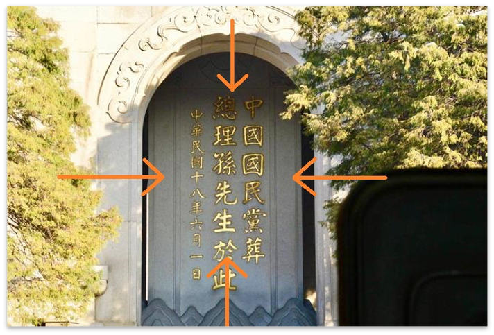 ซึ่งพรรคก๊กหมินตั้งถือได้ว่าเป็นศัตรูอันดับหนึ่งของเหมาเจ๋อตง หรือ พรรคคอมมิวนิสต์จีนในปัจจุบัน ซึ่งจีนได้สร้างป้ายที่ระลึกของพรรคนี้ และได้เปิดช่องลมสี่ด้าน เพื่อทะลุทิศทางให้พลังเสื่อมลงไปเอง ซึ่งถือเป็นการทำลายอำนาจของพรรคก๊กหมินตั้งไปได้ (ซึ่งถือเป็นจุดที่เป็นฐานของอำนาจพรรคด้วย) ซึ่งก็คือประเทศไต้หว้นในปัจจุบัน