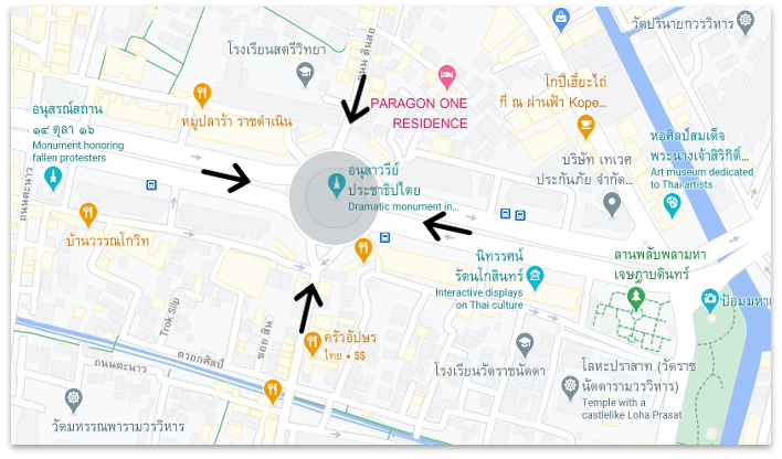 รูปแสดงตำแหน่งที่ตั้งอนุสาวรีย์ประชาธิปไตย