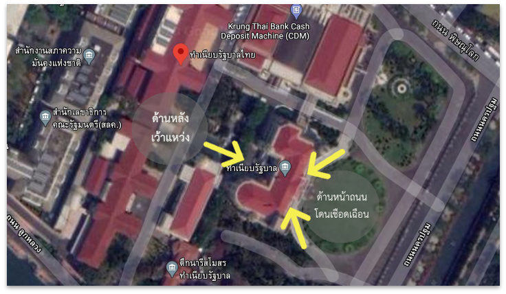 รูปแสดงตำแหน่งที่ตั้งบริเวณทำเนียบรัฐบาล