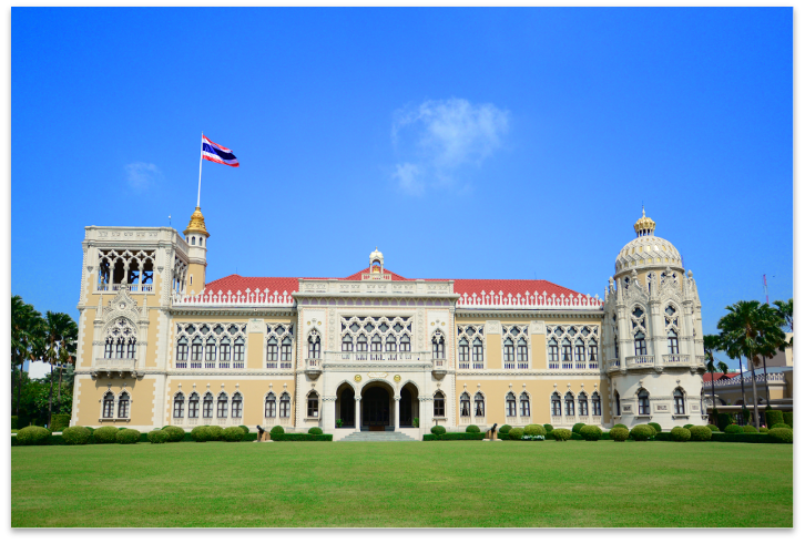 2. ทำเนียบรัฐบาล ซึ่งเป็นสถานที่ที่มีความสำคัญ มีแบบสถาปัตยกรรมที่สืบทอดต่อกันมา แต่ก็ยังขาดความรู้ในเรื่องของศาสตร์ฮวงจุ้ย ซึ่งลักษณะของตึกนั้นด้านหลังตึกจะขาด เว้าแหว่งทาซึ่งในทางฮวงจุ้ยนั้นถือว่าขาดบารมี มีแต่ศัตรู (หลังโดนมีด หน้าโดนเชือด) ถ้าปรับแก้ตรงนี้ได้ก็จะส่งผลดีมาก ๆกับประเทศไทย แต่ในปัจจุบันก็ได้สนามม้านางเลิ้งเก่า ที่อยู่ทางด้านหน้ามาช่วยเป็นลานพลังเปิดโล่ง ในการช่วยดึงกระแสที่ดีเข้ามา ซึ่งก็ต้องถือว่าประเทศไทยก็กำลังจะโชคดีขึ้น