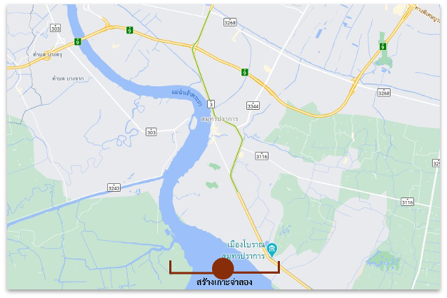 รูปแสดงตำแหน่งทางน้ำไหลออกสู่ทะเล จังหวัดสมุทรปราการ