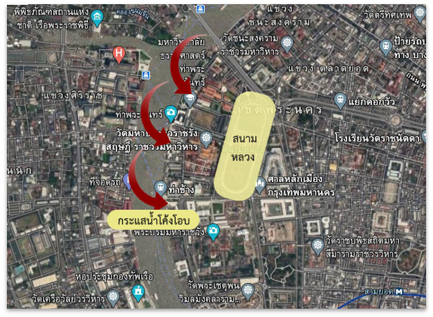 รูปตำแหน่งที่ตั้งบริเวณท้องสนามหลวง