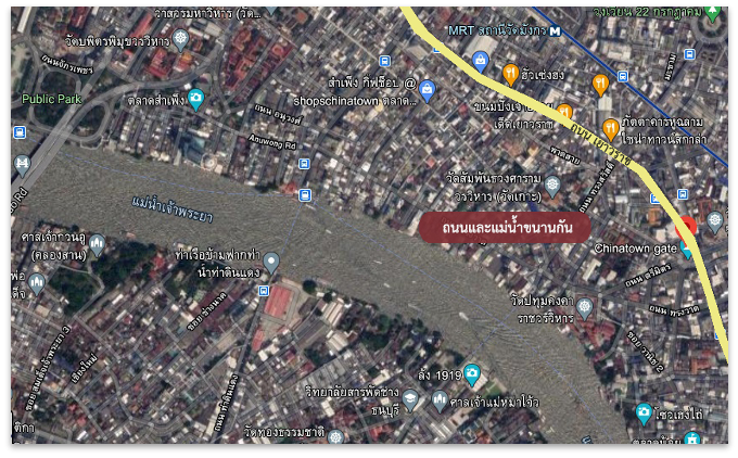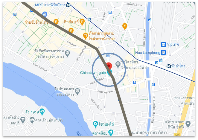 รูปแสดงตำแหน่งที่ตั้งบริเวณถนนเยาวราช
