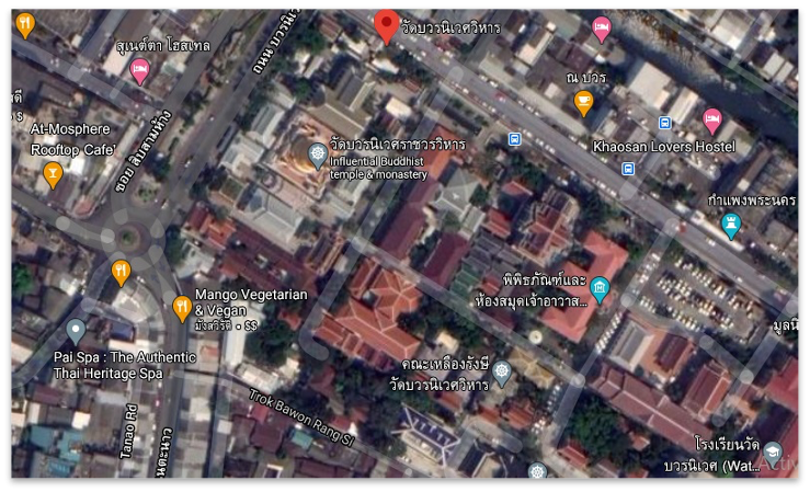 รูปแสดงตำแหน่งที่ตั้งวัดบวรนิเวศวิหาร