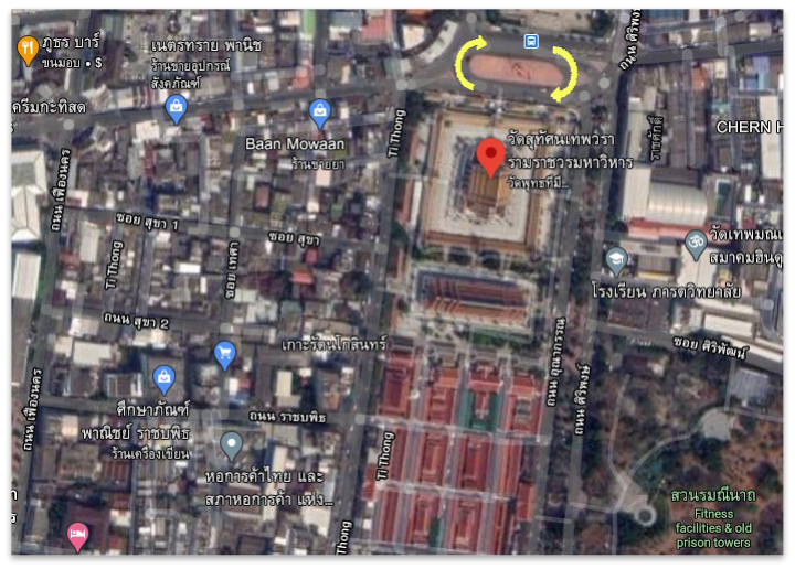 รูปแสดงตำแหน่งที่ตั้งวัดสุทัศนเทพวราราม