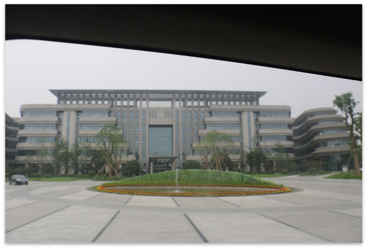 รูปอาคารที่มั่นคง สมดุล เด่นง่า ลานด้านหน้าเปิดโล่ง รับพลังได้อย่างไม่มีที่สิ้นสุด