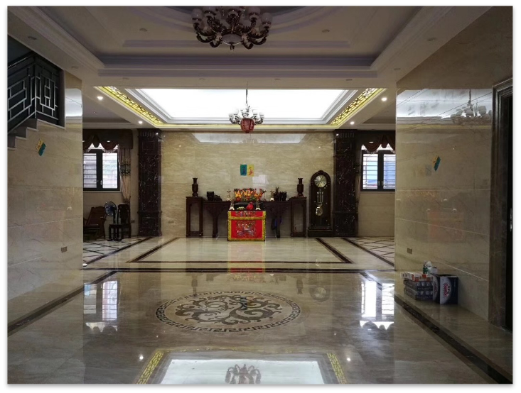 รูปพื้นที่สี่เหลี่ยมเกิดความสมดุล ประตูทางเข้าไม่เล็กเกินไป มีกระแสชี่เข้ามาสามารถเก็บอยู่ในพื้นที่ มีแสงสว่างและกระแสลมไหลเวียนในพื้นที่ได้รอบด้าน ตึกด้านหลังสูง ด้านหน้าต่ำ ถือว่าสมดุลที่สุด