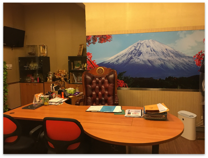 การใช้รูปภาพมาช่วยส่งเสริมให้ได้รับพลังชี่ที่ดี มีตัวเกื้อหนุนส่งเสริม นี่คือห้องทำงานผู้บริหารของช่องทีวีช่องหนึ่ง หลังจากปรับทางฮวงจุ้ยไปก็ได้สัญญากับต่างประเทศ สนับสนุนช่องทีวีใหม่ ๆ และถึงแม้ท่านผู้บริหารจะอายุ 50 กว่าแล้วก็ยังได้ลูกเพิ่มอีกหนึ่งคน ตรงกับคำที่ว่า ภูเขาเสริมลูกหลานและบารมี