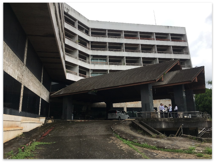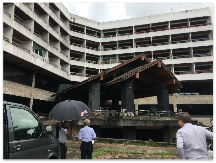 โรงแรมแห่งหนึ่งที่จังหวัด จันทบุรี เปลี่ยนเจ้าของมาหลายท่านแล้ว สร้างอย่างไรก็ไม่สำเร็จและมักจะเกิดอาถรรพ์ ตำแหน่งตรงกลาง ซึ่งเป็นตำแหน่งประธานถูกบีบรัดจากแบน 2 ข้างที่ยาวออกไป เหมือนคนกำลังกางแขน จั่วหลังคา ประตูใหญ่ปลายแหลม 2 ชั้น แทงเข้ามาตรงกลางตึกพอดี ที่ดินตัวอาคารเป็นรูปตัว วี นี่คือสถาปัตยกรรมที่เลวร้ายที่สุด ณวันนี้ยังไม่สามารถสร้างต่อได้ เพราะทุกคนที่มามักจะประสบเรื่องแปลกประหลาดที่ไม่สามารถมองเห็นด้วยตาเปล่าได้เลย