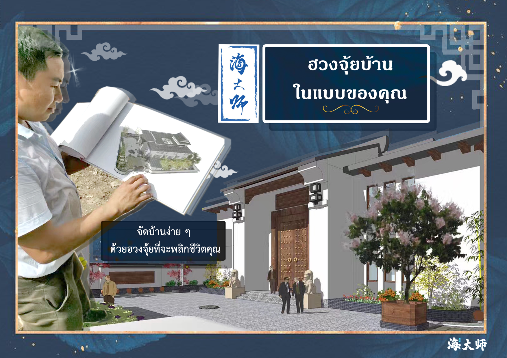 บ้านต้นแบบที่ออกแบบตามหลักฮวงจุ้ยที่เมืองซัวเถา ประเทศจีน ที่ได้รวบรวมเก็บกลอนวิชาฮวงจุ้ยสุสานหนึ่งพันอักษร เขียนด้วยพู่กันจีนโบราณที่มีการสืบทอดกันมารุ่นสู่รุ่นจนถึงรุ่นอาจารย์ไฮ่ต้าซือ ถือว่าได้เรียนรู้ ได้รับรู้จนสามารถนำไปใช้ได้จริง บ้านนี้ทุกอย่างมีการวางที่ดี เมื่อเข้าไปจะรู้สึกถึงพลังสัมผัสที่ดีมีกระแสชี่ที่ดีไหลเวียนภายในตัวบ้านเย็นสบาย มีแสงสว่างพอเหมาะตลอดทั้งวัน